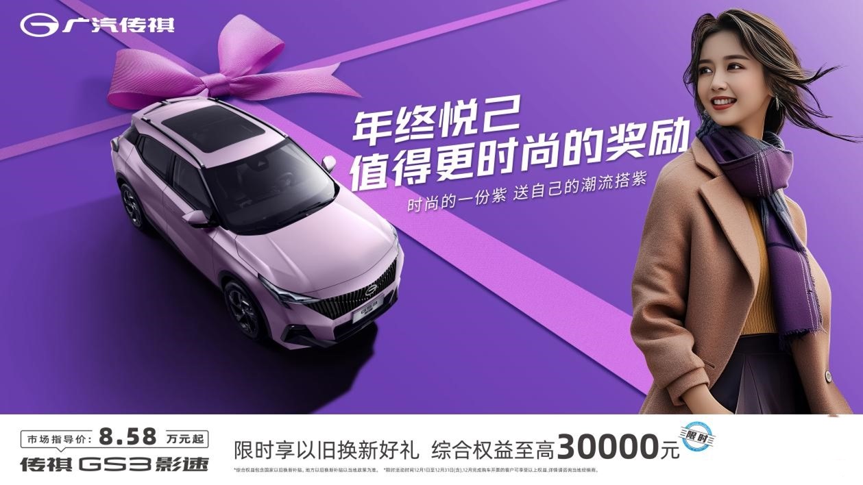 传祺GS3影速恰是年青东谈主大件的前锋潮品,尤其是“一份紫”的配色,配以哑光质感,呈现专有但不张扬的好意思,大街上出行即能斩获超高的回头率。不但颜值高,传祺GS3影速还将交融了遥控停车、交融停车和后向自动刹车等功能的高阶智驾系统荒废墟拉入到10万级,让年青东谈主在有限的预算内,享受更超前的智能用车体验。